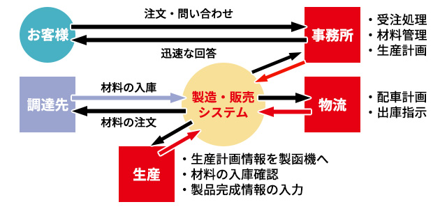 また、自社で開発した管理システムにより、生産現場や配送の状況をリアルタイムで把握。