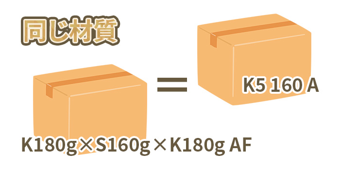 K5とK180g、どちらの表記を用いるかは段ボール加工会社によっても違いますが、K5表記を使う方が多いように感じます。