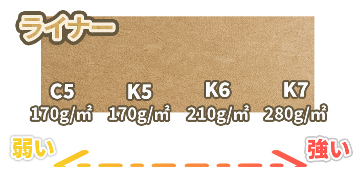また、紙(ライナー・中芯)のグレードで強度も変わりますが、コストも大きく変わります。