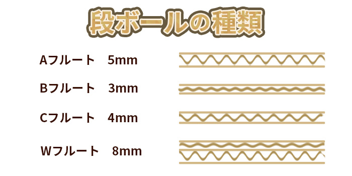 同じシングルフルートであっても、段の高さ(厚み)によって様々な種類があります。